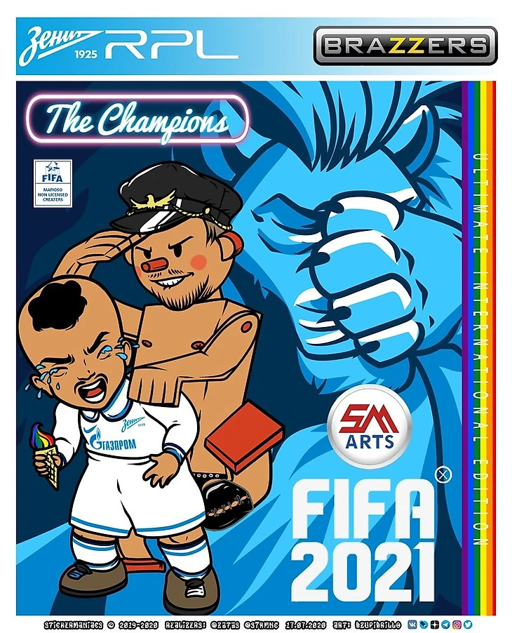 Не сказать, что мы готовы поздравлять клуб с берегов Невы с чемпионством... Пусть, у всех и каждого будет своё мнение на этот счёт. Своим артом мы хотели бы обратить внимание на другое. Высказываем субъективное мнение без попыток кого-то оскорбить. Простая констатация фактов и публикация материалов, находящихся в открытом доступе. Считаем, что обложка франшизы-бестселлера FIFA 2021 должна выглядеть, именно, так!! И никак иначе! Заслужили, шутники!!! Мы догадываемся, но не знаем достоверно, кто занимается PR-продвижением брендов Дзюба и "Зенит". Точно, что этим людям привезли сразу и много или давно ничего не привозили. Поведение в чемпионской раздевалке и "случайно" слитые в сеть кадры оттуда в совокупности с караоке-шоу на банкете после не позволяют всего этого развидеть! Это, вообще, что?!? Вы, когда планируете инфо-поводы и PR-активности, учитывайте, что дуболист на буквы А.Д. (приличные люди вслух не произносят) и его кореша-весельчаки являются примерами и кумирами для детей и подростков. Если для вас всё в норме, т.к. так и было запланировано, то для некоторых из подрастающего поколения увиденное может, существенно, повлиять на сознание и психику. Ясное дело, что вам поровну на подобные последствия. Стрелка на груди превыше всего! Надеемся, что в Иране не оценят подобное поведение соплеменника. Персы ни разу не терпилы. Будем ждать развития ситуации с Азмуном. Многие адекватные болелы ФКЗ были в том же состоянии, что и главный тренер. Поражены. Сквозь улыбки радости. А, после, многие из СБГ осознали и написали, что им стало невероятно тоскливо и стыдно. Поразили и высказывания руководства ФКЗ (в лице Медведева А.И.): "Они дурачились. Это чемпионская раздевалка: в ней царит бесшабашная, отвязная атмосфера, парни все время подкалывают друг друга и делают миллион других провокаций. Вы сами видели это видео и можете судить о том, какая огненная атмосфера там была. Это не место для скучных моралистов и чопорных блюстителей приличий." Мы решили следовать логике и мышлению этого топ-менеджера петербургского клуба. Всё, опубликованное ниже, не более, чем дурачество, нескучный морализм и безобидные подколы. Вы там не обижайтесь только! В моменте не превратитесь в скучных моралистов и чопорных блюстителей чего-нибудь! А видео-зарисовка не более, чем плод больного и разрушенного сознания нашего контент-мейкера. Вот такой он отвязный и бесшабашный парень. С огненной атмосферой в голове. Много лет со справкой и под наблюдением раз в месяц. На таких не обижаются... #Зенит #РПЛ #СанктПетербург #СтикерМаньяки #СтикМан #СТКМНК #StickerManiacs #StickMan #STKMNC