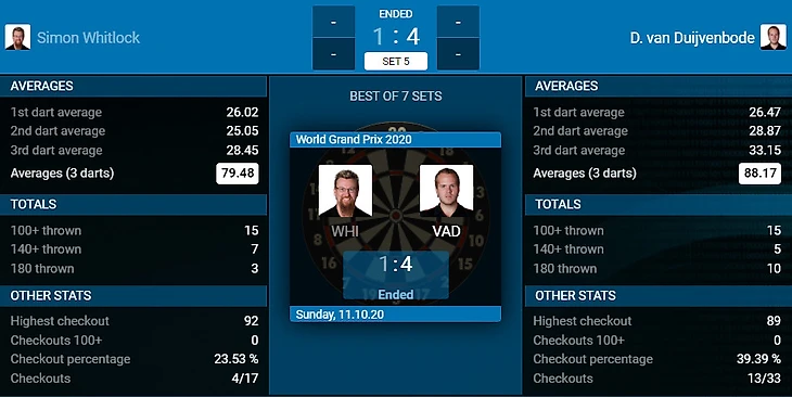 Невероятный турнир для Дирка. Перед проведением турнира он находился на 73 строчке рейтинга, а в итоге попал в финал. До него последим финалистом мэйджор турнира PDC из Нидерландов (кроме ван Барневельда и ван Гервена) был Роланд Шолтен в 2007 году. А вот Саймон игру откровенно провалил. В данном случае уместен только один вопрос - как и зачем за день до этого можно было вынести в пух и прах действующего чемпиона Мирового Гранд При и первого номера в рейтинге Майкла ван Гервена, чтобы потом так неожиданно слиться?