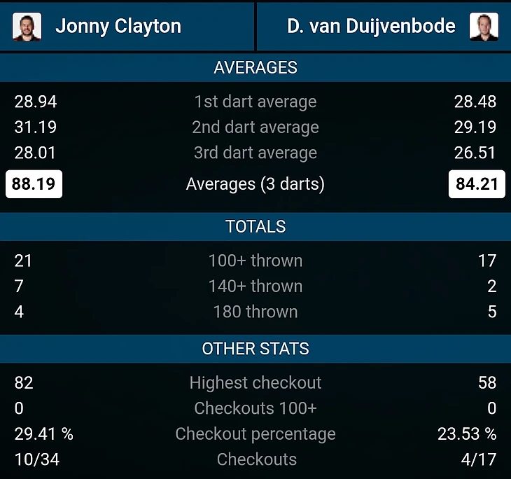 Второй полуфинал получился не менее упорным. Решающей стала ошибка Джонни в 18-ом леге, когда он вместо 111 ошибочно набрал 101