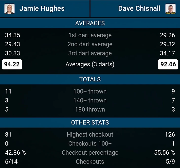 Первый раунд Jamie Hughes 6-5 Dave Chisnall