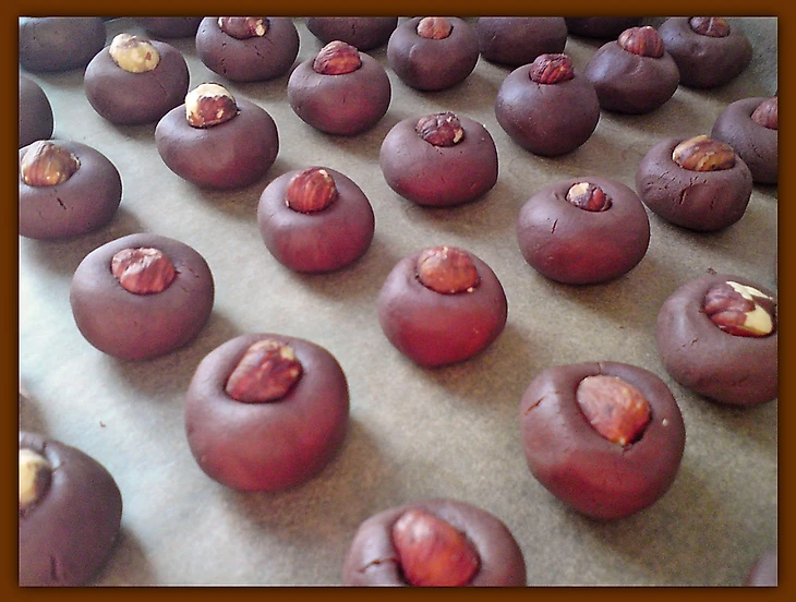 А еще у меня жёнушка добавляет в тесто сразу измельченные орехи, их конечно не видно в итоге, но вкус всему укусу печеньки добавляется офигенный. И в конце опять посыпать шоколадом.