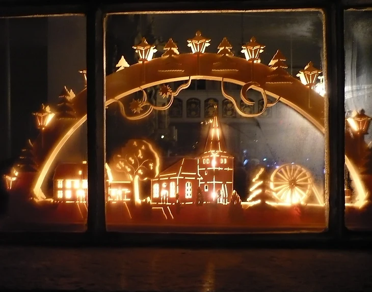 Этот канделябр в форме арки — традиция эрцгебиргских горняков украшать к Рождеству свои дома. Благодаря этой традиции темные зимние улочки заполнялись светом и становились сказочными.