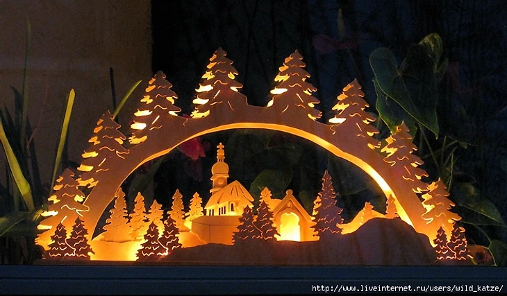 Обычай украшать окна светящимися арками зародился в городке Зайффен (Силезия) и постепенно распространился на всю Германию.