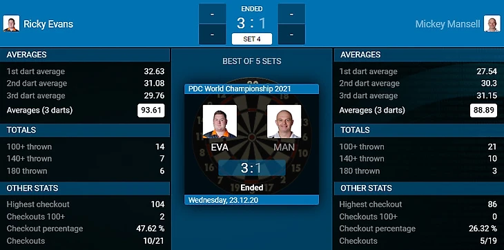 Ricky Evans 3-1 Mickey Mansell