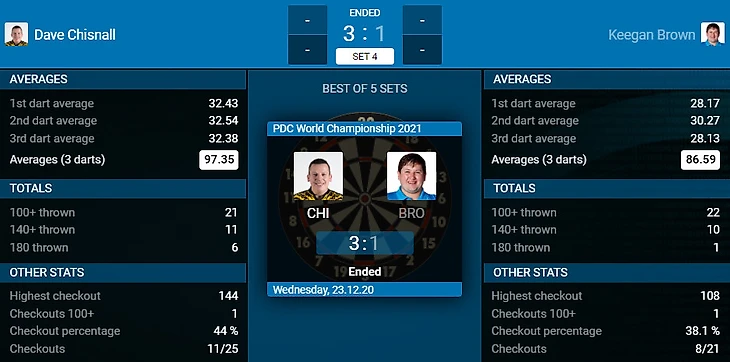 Dave Chisnall 3-1 Keegan Brown