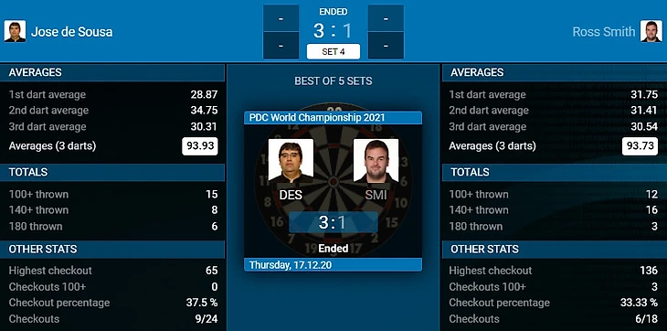 Очень хорошую игру показал чешский дартс мастер Карел Седлачек. Даже трудно поверить, что Карел не смог реализовать семь дротиков на матч! Раян Джойс благодаря опыту в решающий момент оказался более хладнокровным.