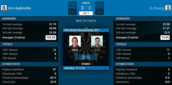 Ещё одна большая сенсация турнира. Молодой и крепкий уже голландец Дирк ван Дайвенбоде сильный игрок, но он выбил не просто сильного дартсмена, а чемпиона мира 2018 года!