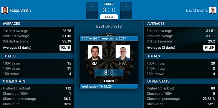 Ross Smith 3-0 David Evans