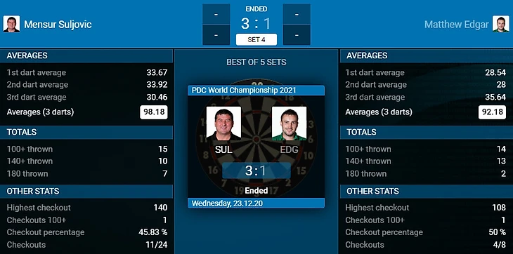 Mensur Suljovic 3-1 Matthew Edgar
