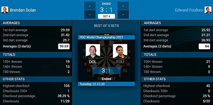 Brendan Dolan 3-1 Edward Foulkes
