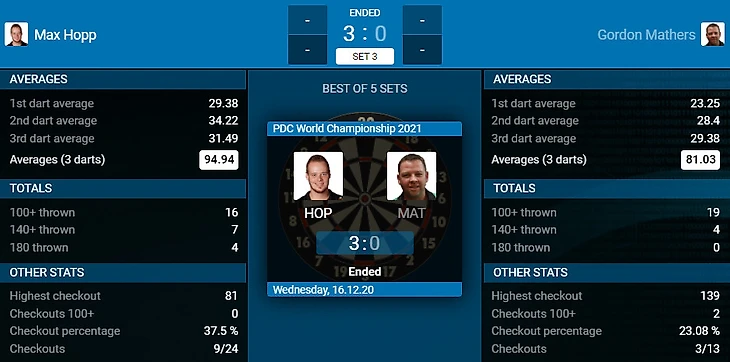 Max Hopp 3-0 Gordon Mathers