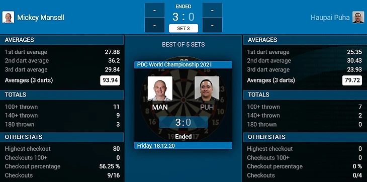 Микки не дал своему сопернику выиграть хоть в одном леге.