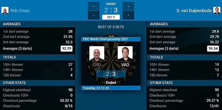 Dirk van Duijvenbode 3-2 Rob Cross