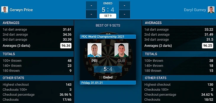 Gerwyn Price 5-4 Daryl Gurney