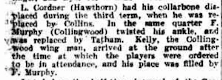 Пока «Хоторн» улучшал свою игру на протяжении второй половины игры, удача Ларри Корднера закончилась сразу после того, как он забил свой первый гол на высшем уровне. Он покинул футбольное поле через несколько минут, что потом журналисты назвали «травмой ключицы».