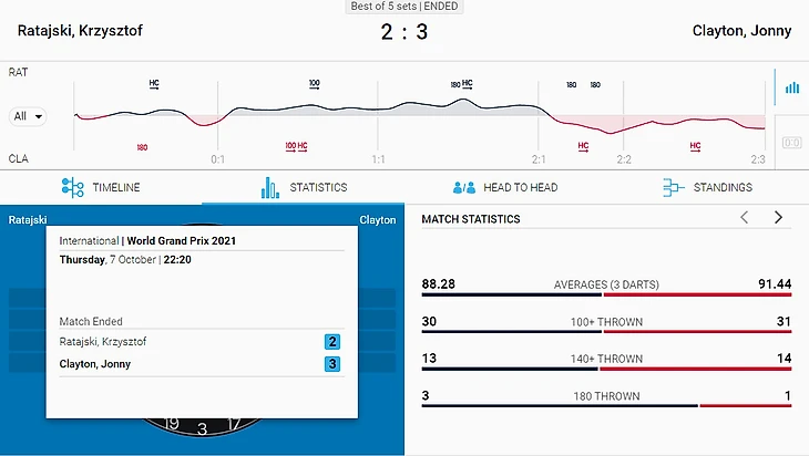 Jonny Clayton 3-2 Krzysztof Ratajski (3-1, 2-3, 2-3, 3-0, 3-1)