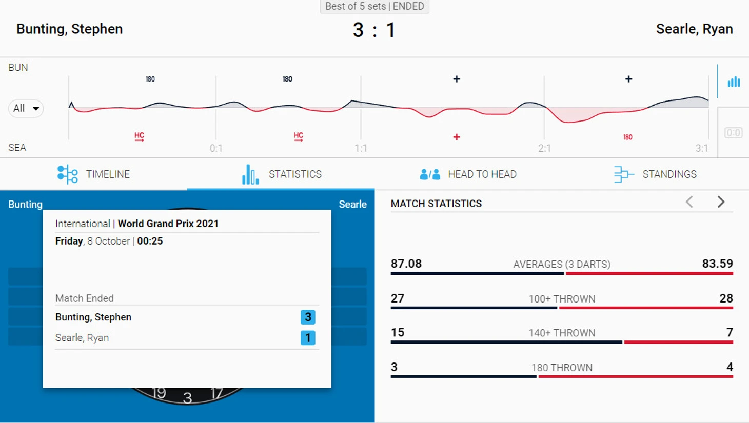 Stephen Bunting 3-1 Ryan Searle (1-3, 3-1, 3-2, 3-2)