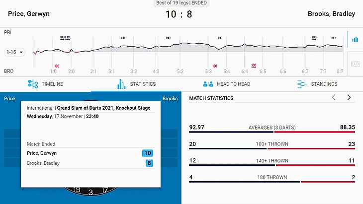 Брэдли Брукс был довольно близок сотворить сенсацию уже во втором раунде, но опыт Прайса сыграл решающим фактором в конце матча