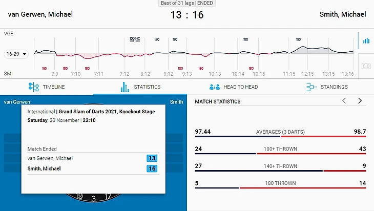 Майкл Смит сотворил очень яркую сенсацию, обыграв довольно хорошо игравшего на турнире Майкла ван Гервена. Данный матч пойдёт в копилку памятных игр для англичанина