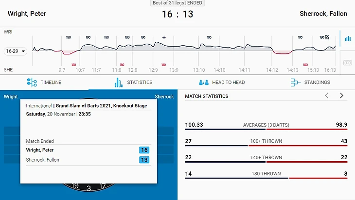 Третью подряд историю Шеррок не удалось уже совершить. На этапе четвертьфиналов её остановил Питер Райт. Но надо отдать Фэллон должное, она держала очень высокий уровень игры на протяжении всей встречи, а это почти 30 легов. Это говорит о том, что и женщины в дартс могут проводить очень длинные матчи на хорошем уровне. На удивление это оказался лучший четвертьфинал