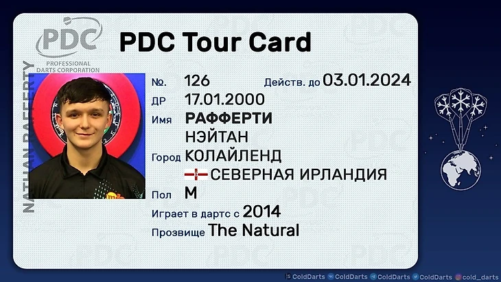 Нэйтан Рафферти – уроженец Колайленда, небольшого шахтёрского городка в центральной части Северной Ирландии. Сегодня, 17 января, парню исполняется 22 года – таким образом, наш герой ещё и именинник! Рафферти впервые взял дротики в 14 лет и в том же возрасте выиграл юниорский чемпионат своей страны, показав талант точно бросать в цель. С 2016 года Нэйтан крутится в системе PDC, а его лучший результат – 1/16 финала на UK Open в 2018-м. Причём тогда Рафферти сенсационно обыграл Питера Райта!
