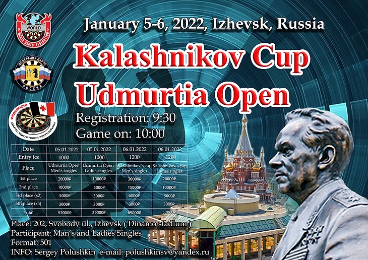 Начнём по порядку. В Ижевске 5 и 6 января прошли два международных дартс-турнира: Kalashnikov Cup и Udmurtia Open. Они внесены в календарь World Darts Federation (WDF) как турниры ранга Bronze.