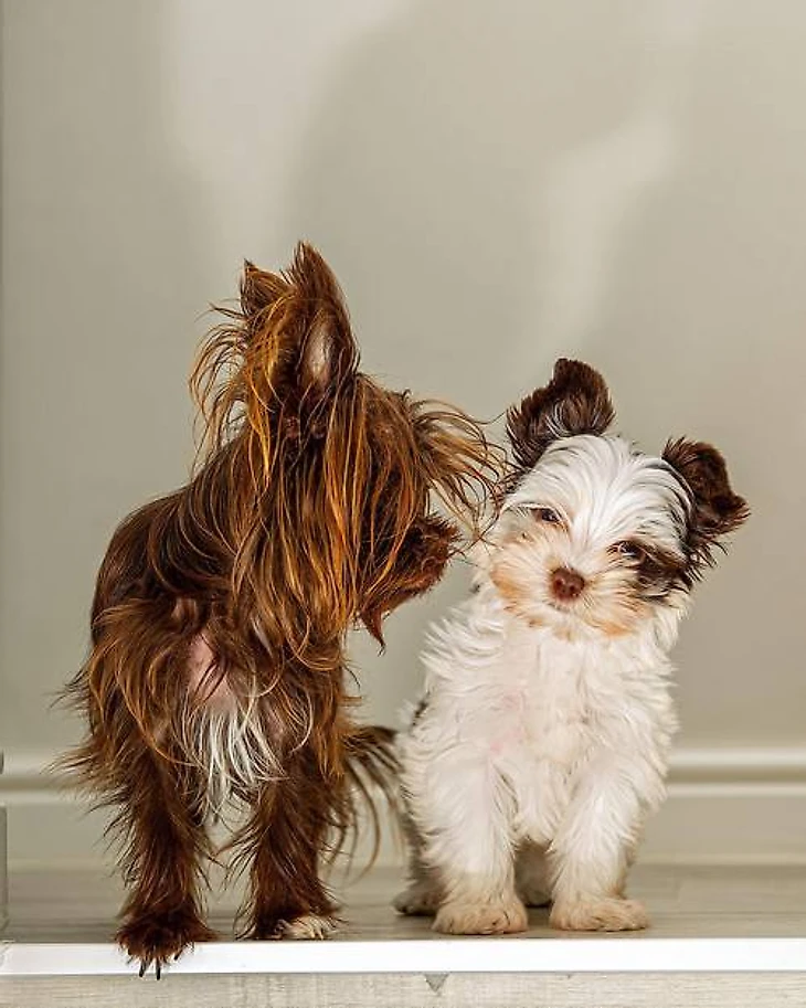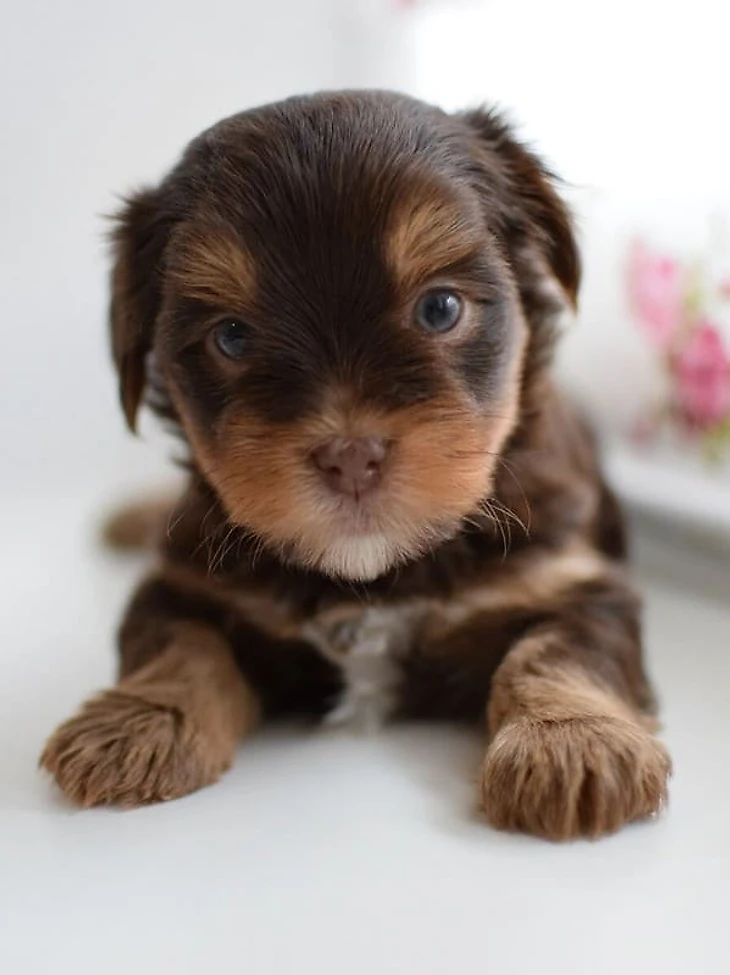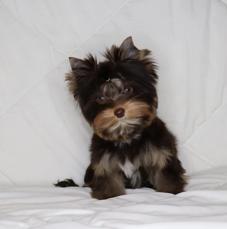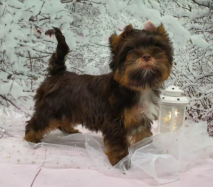 1. Такие щенки появляются у обычных йоркширских терьеров, если у обоих родителей присутствует рецессивный ген b, который и отвечает за появление каштанового окраса.