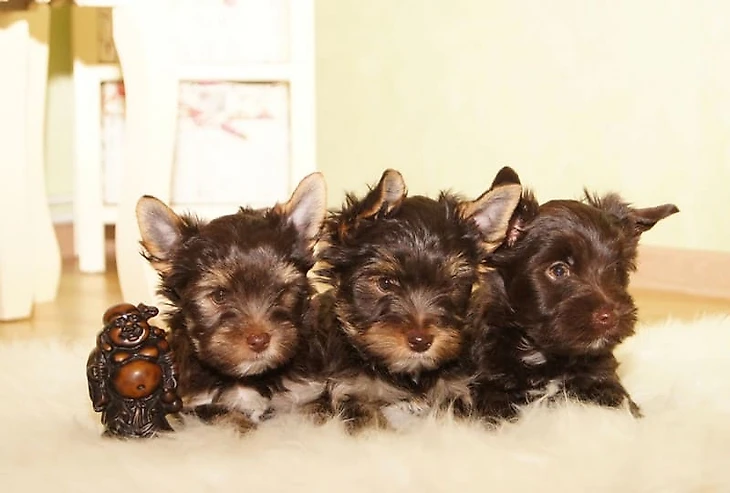 2. Для того, чтобы получить нужный окрас, йоркширского терьера скрестили с манчестерскими терьерами, и так получились шоколадные щенки.