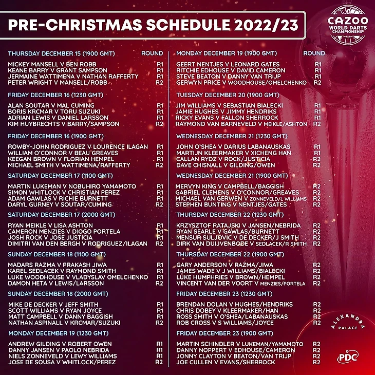 Сегодня на календаре 15 декабря 2022-го — большой день в мире дартса. Во-первых, «Холодным дротикам» исполнилось три года! А во-вторых, в Лондоне стартует очередной чемпионат мира по версии Профессиональной дартс-корпорации (PDC). Специально к этому событию мы подготовили подборку пяти, на наш взгляд, самых интересных матчей первого раунда, за которыми можно следить даже непосвящённым. Берём чай, плед и поехали!