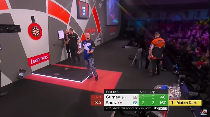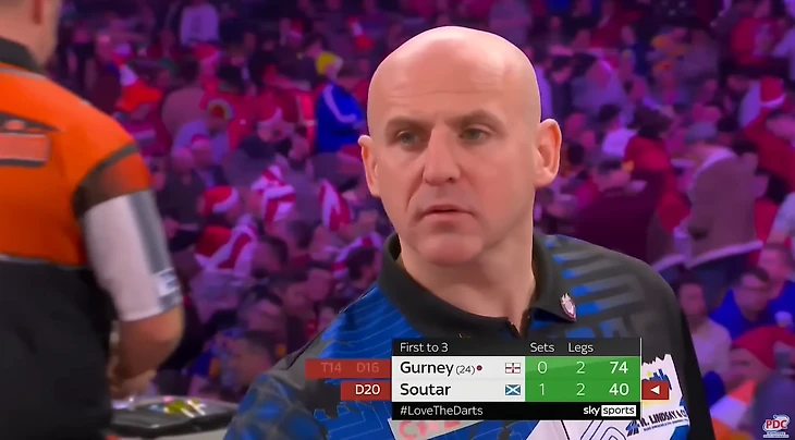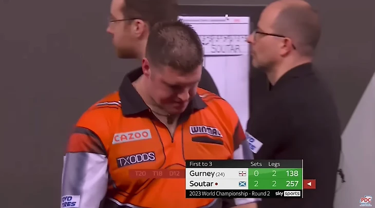 Некогда североирландец Дэрил Герни был крут и даже играл десайдер с Прайсом на Чемпионате Мира 2021 (Прайс выиграл десайдер, а позже и сам ЧМ), а сейчас вылетает в первом раунде. Что стало причиной такого спада в игре Герни? Судя по его мимике и поведению во время игры с Сутаром, он просто потерял мотивацию. За последние годы Герни редко попадал в финалы турниров, что, видимо, и сказалось на его мотивации.