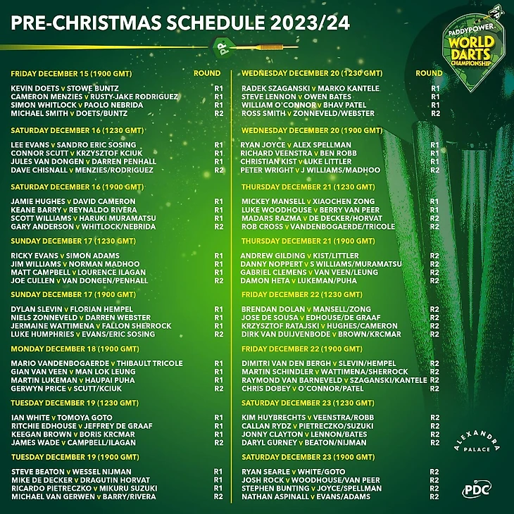 Пожалуй, это единственный матч, где победитель известен на 99,99 процентов. Уильям О’Коннор — известный дартсмен, фанат The Cranberries и бустер «Холодных дротиков». Про Бхавала Патела не знает вообще никто, кроме его окружения. Англичанин с индийскими корнями поехал на чемпионат мира в последний момент — его соотечественник Пракаш Джива попался на договорных матчах и был отстранён. Бхав был первым резервистом в Индии, поэтому путёвку горе-игромана отдали ему. Вся интрига заключается в том, сможет ли Пател хотя бы раз бросить в дабл — есть ощущение, что большего Уилли ему не позволит. Ожидается форменное избиение младенцев. Но почему бы за этим не понаблюдать?