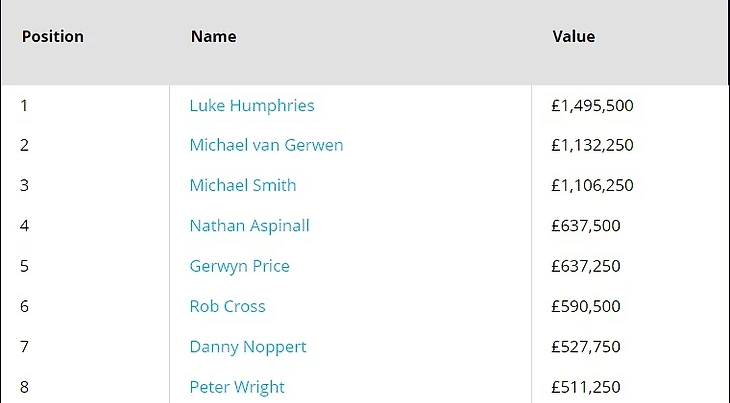 В рейтинге Прайс занял пятое место, отстав от Эспа всего на 250 фунтов. Для сравнения: отрыв валлийца от Роба Кросса составил 46750 фунтов. Нэйтан, в свою очередь, отстал от Майкла Смита почти на 470 тысяч! Как несложно догадаться, расстояние между англичанином и валлийцем минимально до умопомрачения. И это в борьбе за Премьер-лигу!