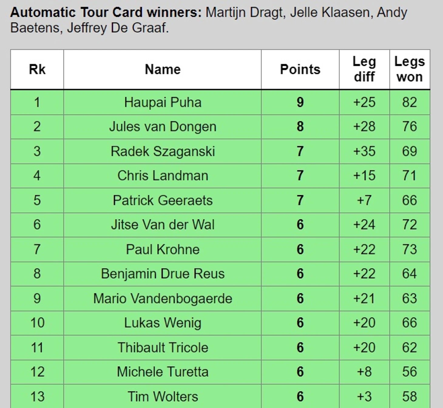 В первую очередь карту получают игроки из топ-64 рейтинга PDC. Сюда входят Майкл ван Гервен, Люк Хамфрис, Гервин Прайс, Питер Райт и многие-многие другие. С нового сезона в этот список включается всемирно известный вундеркинд Люк Литтлер — он на 31-м месте.