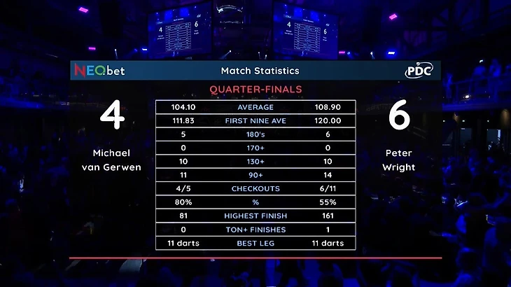 Но после четвертьфинальной феерии Питер сдал в статистике. Стабильности ему пока не хватает. Литтлер, будем откровенны, сам отдал финал, поддавшись на провокации публики. Да и Чиснелл не выглядел безнадёжно. Поэтому до возвращения истинного Райта ещё далеко, и он сам это прекрасно понимает.