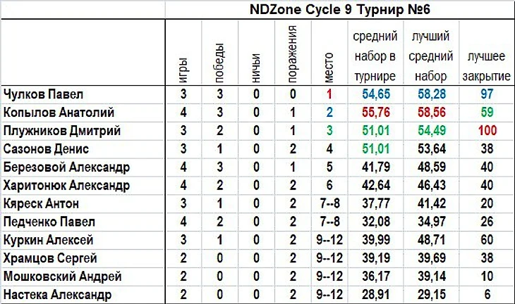 Статистические итоги шестого турнира девятого цикла NDZone 🎯