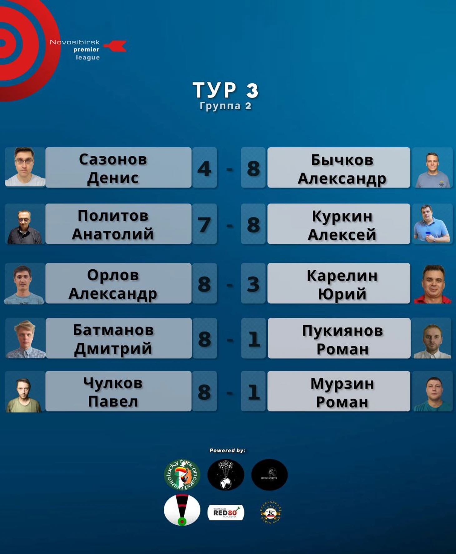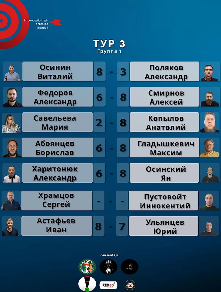 Результаты третьего тура Novosibirsk Darts Premier League