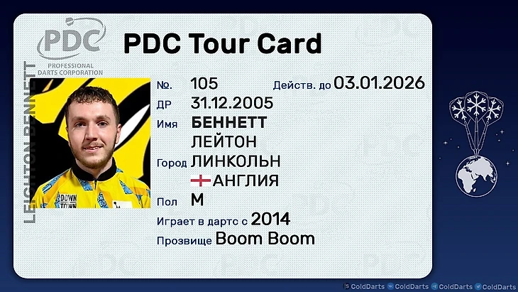 Но в январе 2024 года Лейтон внезапно напомнил о себе, официально став дартс-профессионалом. Ему досталась одна из тур-карт, которые ежегодно разыгрывает PDC среди любителей. Беннетт вошел в число 128 сильнейших игроков в дартс.