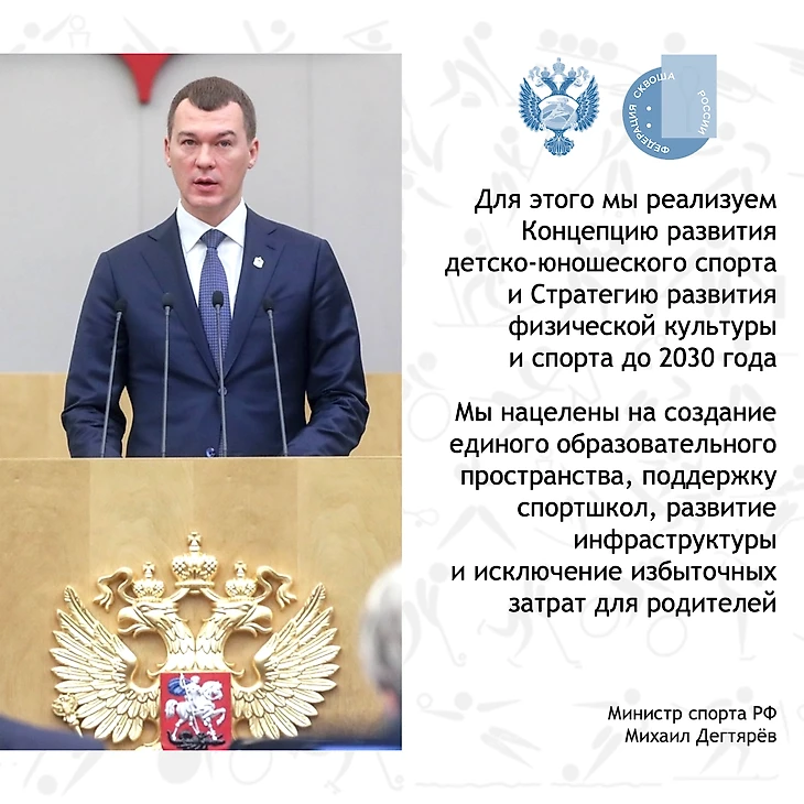 На днях Министр спорта России Михаил Дегтярёв выступил с очень здравой, на наш взгляд, инициативной повышения доступности детского спорта в стране. Президент Федерации сквоша России Артём Буслаев отметил, что в планах на 2025 год стоит открытие в регионах детско-юношеских спортивных школ по сквошу, и это - крайне важная задача. Убеждены, что сквош, один из самых здоровых и энергичных видов спорта, должен стать доступнее для российских детей, приобрести действительно массовое распространение.