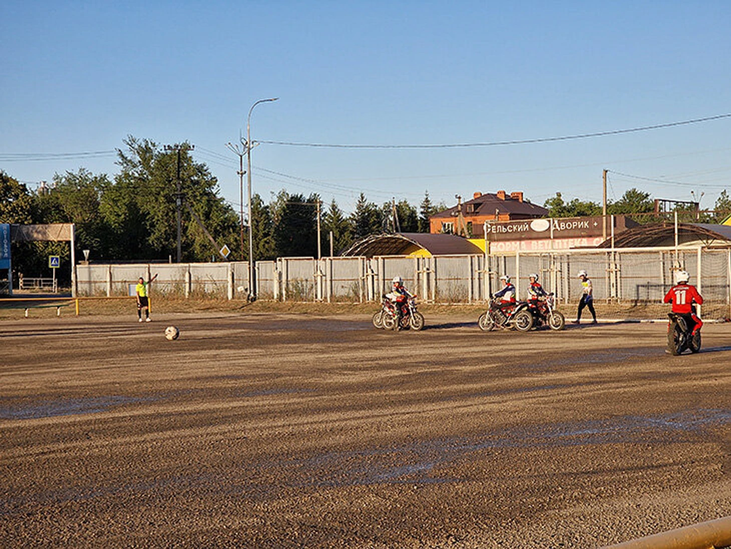 По пути на мотобольный стадион проехали стадион футбольный. Новенькая трибуна, изумрудное поле, все такое красивое. Спрашиваю водителя: а какой тут главный вид спорта, футбол или мотобол? Конечно, мотобол, о чем тут говорить. У нас на мотобол ходят. Футбол — так.