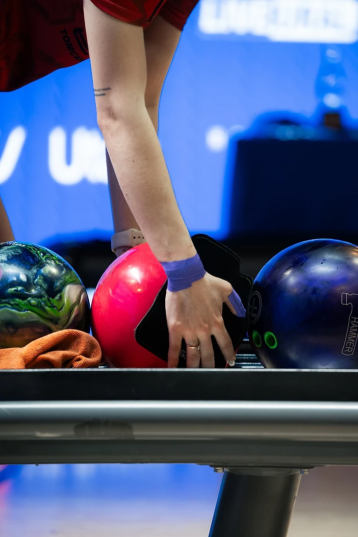 Есть мастер специальный. Мы к нему приезжаем, он замеряет карту руки. Карта руки делается по расстоянию между пальцами. Измеряет овалы большого пальца. У некоторых даже мастеров есть шары-гибриды такие, которые позволяют поэкспериментировать с версиями. Сделать эксперимент над расстоянием. Это расстояние называется “Спэн”. Это расстояние от безымянного и среднего пальцев до большого. То есть это все очень-очень важно. Любая погрешность в расстоянии между пальцами может повлиять на выпуск шара.