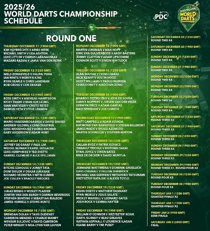Главный дартс-герой этого года Люк Литтлер готов к защите чемпионского титула! Вундеркинд феерит: за один сезон он выиграл почти все, что только можно, и прославился своей сексуальностью. Остановить альфача попробует русскоязычный экс-дальнобойщик из Литвы Дарюс Лабанаускас, который в следующем году вернется в дартс-профессионалы. Наверняка их пути сойдутся еще не раз. Но сейчас Лабе придется включить сигнал аварийной остановки — Литтлер промчится по нему как скоростной поезд. Любой другой исход, к сожалению для фанатов Дарюса, не предвидится даже в самых дерзких снах.