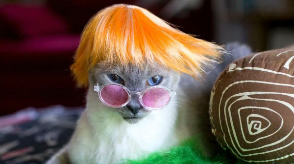 Кошки с достоинством демонстрируют различные наряды и даже парики