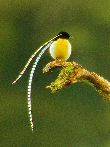 Чешуйчатая райская птица (Pteridophora alberti). «Расписанные» орнаментом плюмажи на голове у самцов (пальцекрылки) выглядят столь неправдоподобно, что когда первых подобных птичек привезли в Европу, люди не верили, что это их естественное украшение.