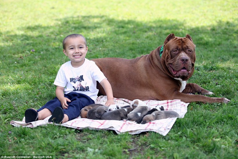 И хотя владельцы пса говорят, что его укус может «проткнуть руку человека как зубочистка», на этих снимках он показывает свою мягкую сторону, прижимая и облизывая свой новый выводок.