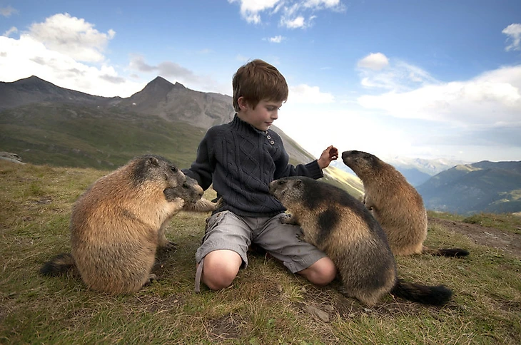 Дикие сурки дождались пока ребёнок отобьётся от родителей и напали на него все вместе.