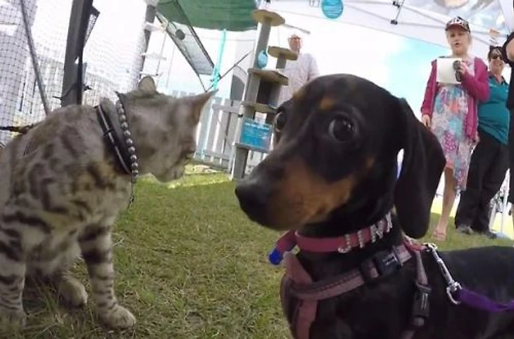 Роберт, владелец Бумера, повёл своего кота на поводке на выставку собак.