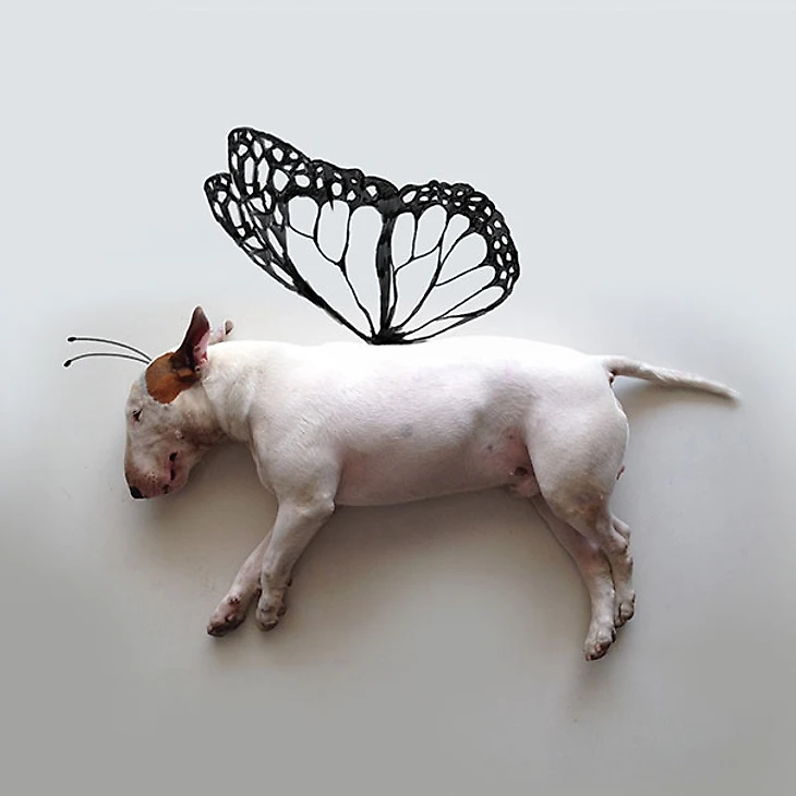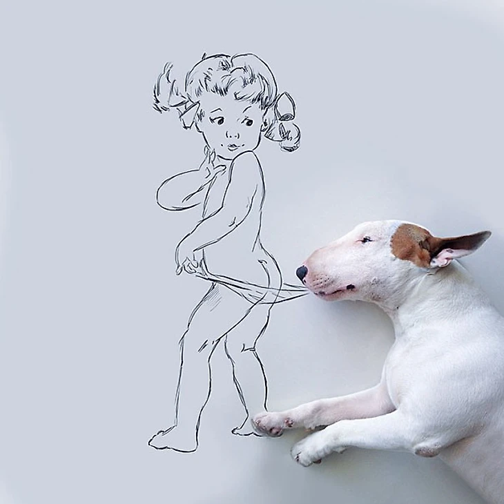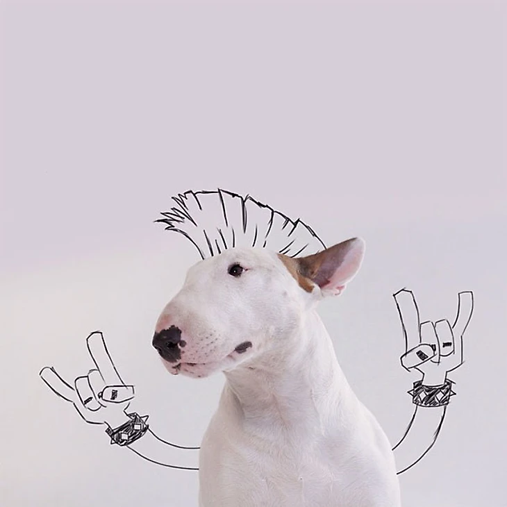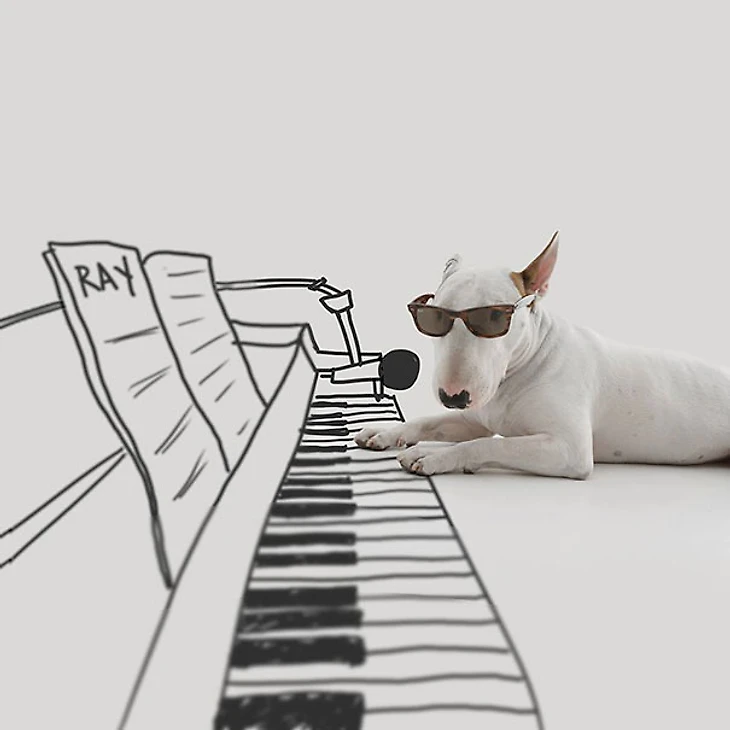 Рафаэль не растерялся и моментально увлекся фотографированием Джимми Чу на белом фоне. Как только пес в блаженстве распластывался у белой стены, Рафаэль хватал маркер и рисовал вокруг него дивный новый мир. Вдохновение - и сама жизнь! - вернулись к нему.