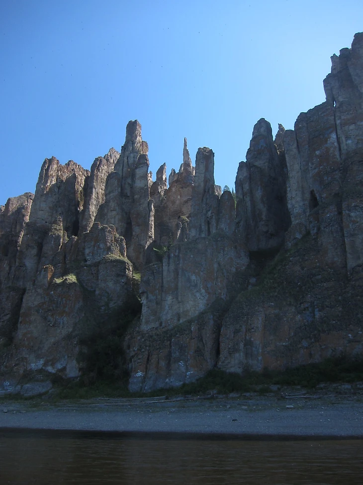 Десятки километров древних известняковых останцев, выстроившихся вдоль правого берега Лены. Имеют четкую северную ориентацию, из-за чего почти всегда в тени. Напоминают руины великанских городов, замков, башен, небоскребов и статуй. Но все эти километры практически непригодны для лазания.