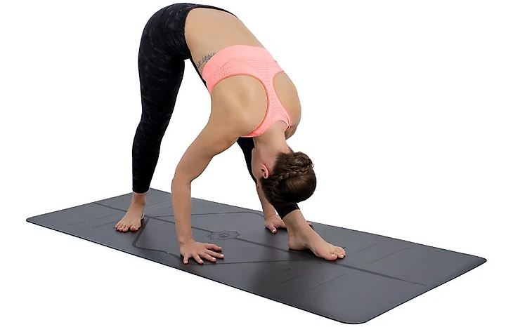 Также на него нанесена фирменная разметка AlignForMe – карта, которая помогает ориентироваться в асанах, соблюдать углы и отступы, более технично выполнять элементы.