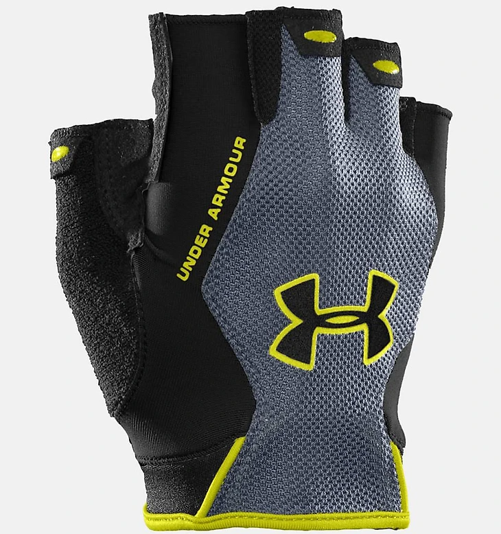 Лёгкие, дышащие, с уже знакомым HeatGear, ладонное покрытие из нейлона и полеуретана (пополам). Размерный ряд классический. Цвет чёрно-серый.